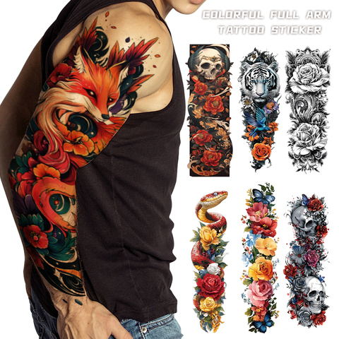 Büyük boy tam kol geçici dövmeler erkekler ve kadınlar için özel dövme çıkartmalar yetişkin su geçirmez